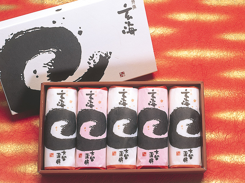 仙崎は、天下の奇勝「青海島」と、豊かな漁場に恵まれた「かまぼこ」の産地。とりわけ当社の「金印玄海」は、近海で獲れる新鮮な生のエソだけを使用し、昔ながらの臼摺り技法を守り造っています。「金印玄海」は数々の全国蒲鉾品評会で大賞をいただきました。大留蒲鉾は、誇りを持って伝統の味を守り続けていきます。